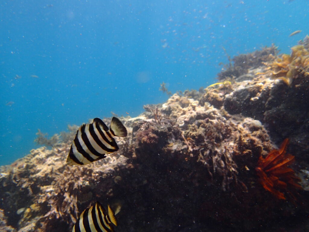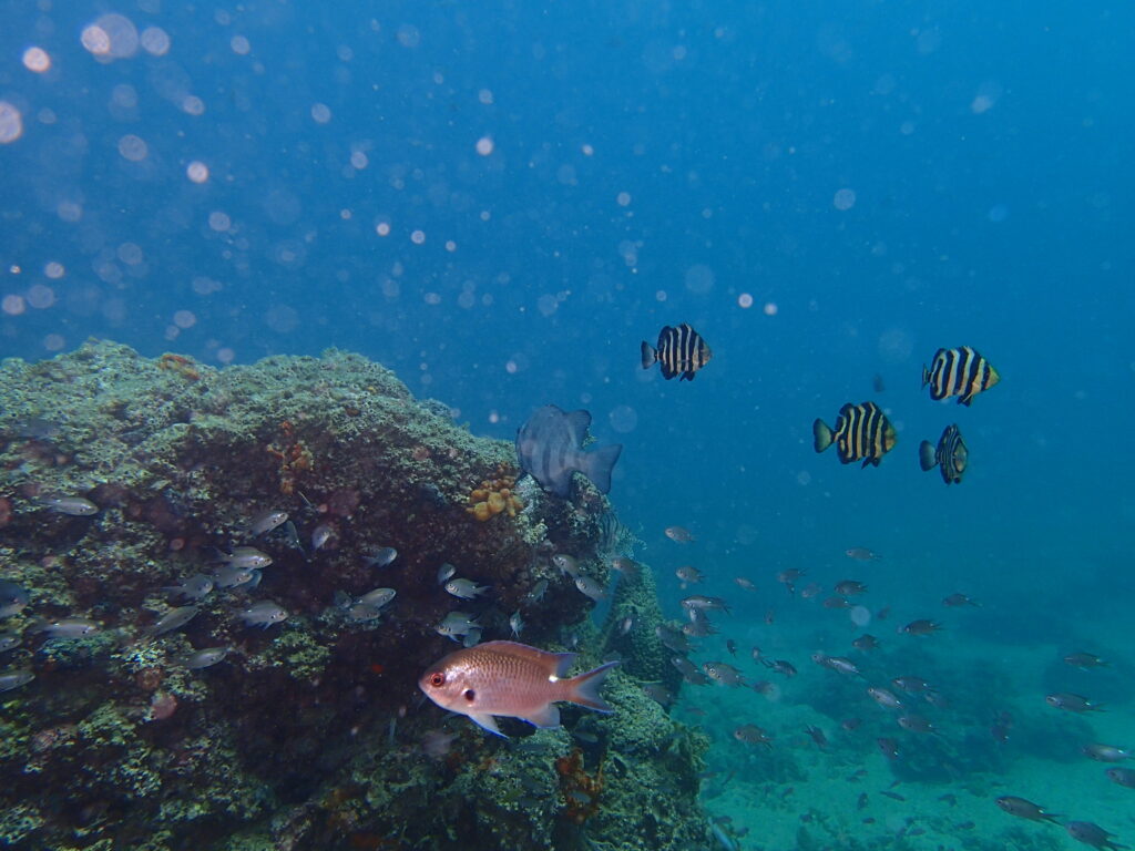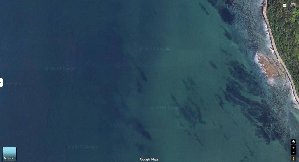 水中写真 恋の浦の水中写真を集めてみました。作品の提供者はこのダイビングサービスを利用してくださっている皆さまです。撮影者のお名前や撮影データは公表していません。 恋の浦の水中景観はどんな感じかな?という質問にお答えできるかもしれません。 Google Map からのポイントの写真です。写真左側の黒っぽいところがポイント「小鯛曽根」です。